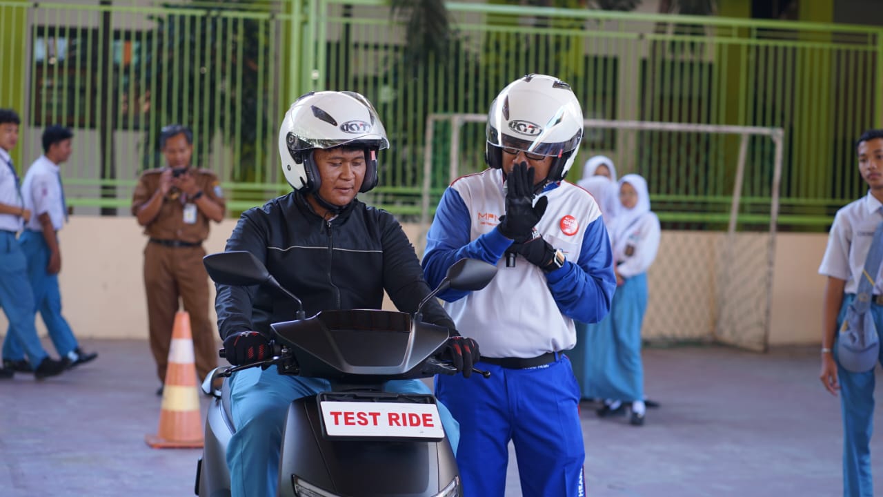 Sementara itu Ahmad Hilmy selaku perwakilan PT. Eka Kurnia, menjelaskan pemaparannya terkait materi pengetahuan dasar dalam berlalu lintas dan perilaku berkendara yang aman, dan informasi yang diterima bahwasanya lebih dari 150.000 kecelakaan terjadi di usia produktif.