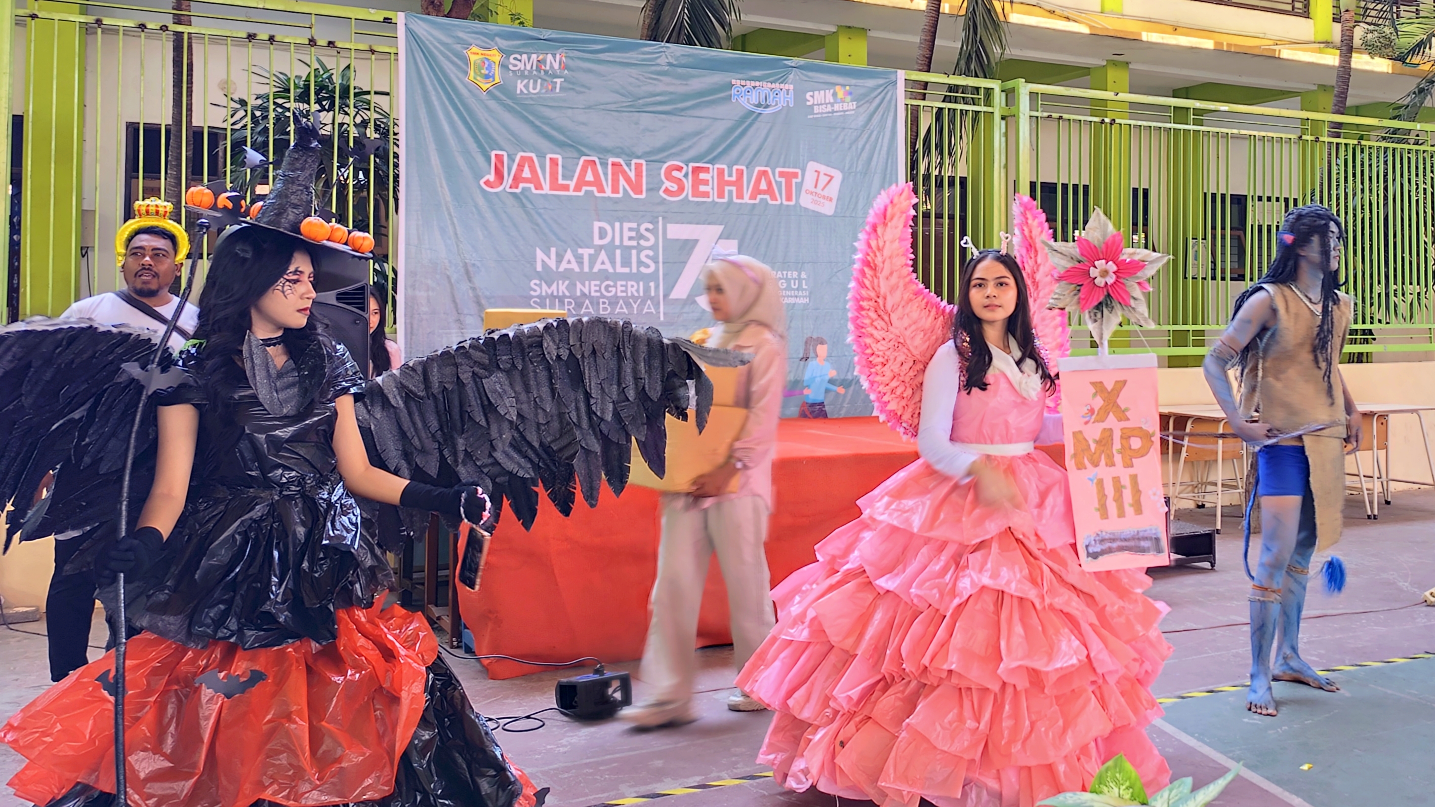 www.smkn1-sby.sch.id. Surabaya - Hari itu, sitausi sekolah tidak seperti biasanya, wajah gembira begitu menghiasi pelataran sekolah, ya, hari itu terasa istimewa, meski telah memasuki hari kelima Dies Natalis SMK Negeri 1 Surabaya yang ke-75, dimulai dengan semangat olahraga. Ratusan siswa, guru, dan staf sekolah berkumpul pagi-pagi untuk mengikuti jalan sehat mengelilingi wilayah sekolah.